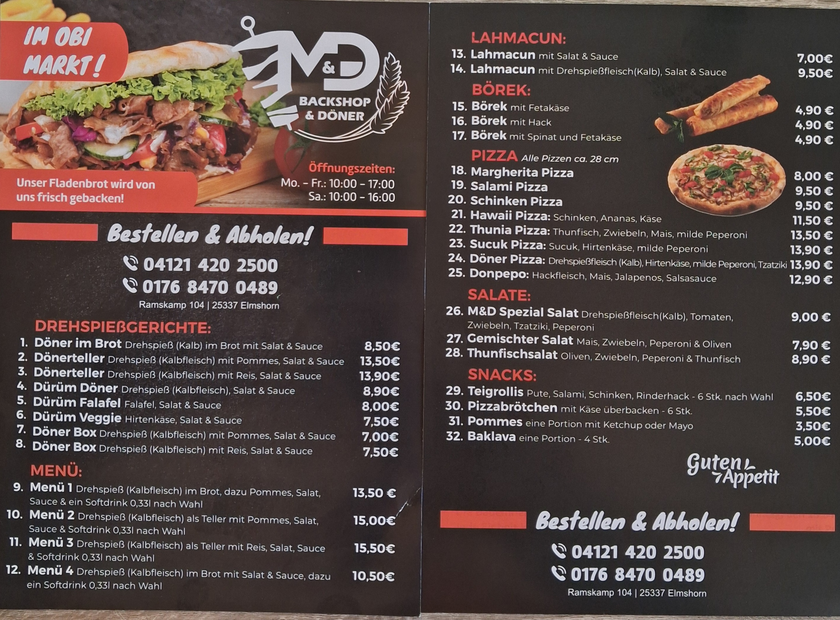Willkommen im M&D Backshop im schönen Elmshorn. Wir freuen uns darauf, Sie als Gast begrüßen zu dürfen! Kommen Sie vorbei und lassen Sie es sich in unserer Bäckerei gut gehen. Wir freuen uns auf Sie! Sie werden mit echter Gastfreundschaft und einer großartigen Auswahl an türkischen Gerichten begrüßt. Leckere hausgemachte Gerichte werden hier von den besten Köchen zubereitet. Bringen Sie Ihre Freunde und Familie mit, um unser leckeres Essen zu genießen. Wenn Sie eine Naschkatze sind, werden Sie unser köstliches Gebäck lieben. Ihre Ernährungsbedürfnisse sind uns wichtig, deshalb bieten wir eine Auswahl an Halal- und vegetarischen Optionen. Genießen Sie zu Ihrer Mahlzeit leckeren Kaffee und Tee in unserem gemütlichen Ambiente. Genießen Sie Frühstück und Mittagessen in unserem stilvollen Lokal.